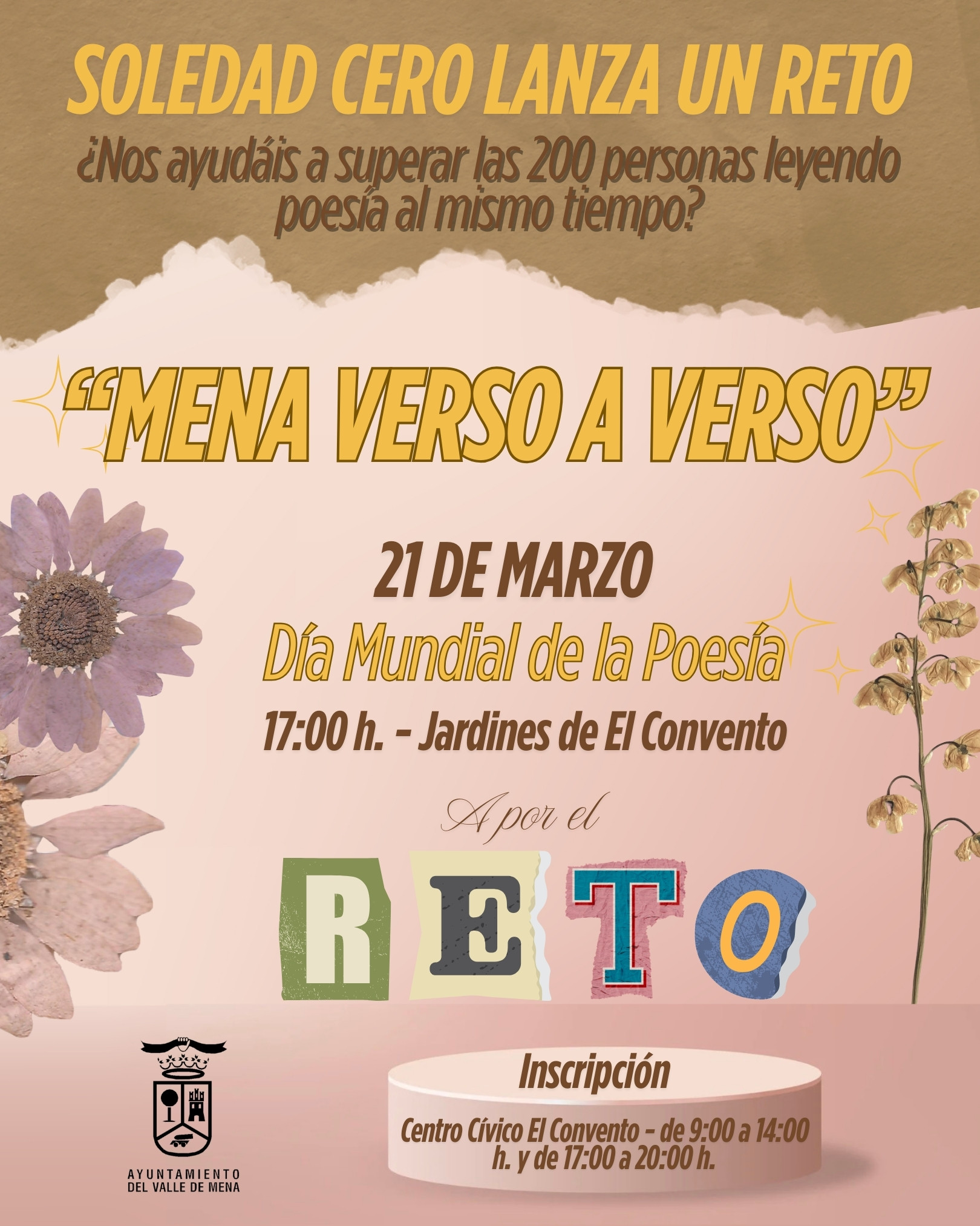 El programa municipal del Área de Mayores “Soledad Cero” organiza el reto poético “Mena, verso a verso”, una iniciativa que convertirá la palabra en protagonista de un encuentro intergeneracional abierto a toda la ciudadanía.